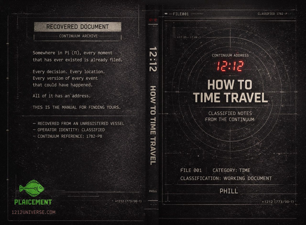 HOW TO TIME TRAVEL: Notes from the Continuum is the first recovered file from the 12:12 Universe — a classified lore document that maps hidden systems, fractured timelines, and the mechanics behind movement through time that nobody is supposed to know about.